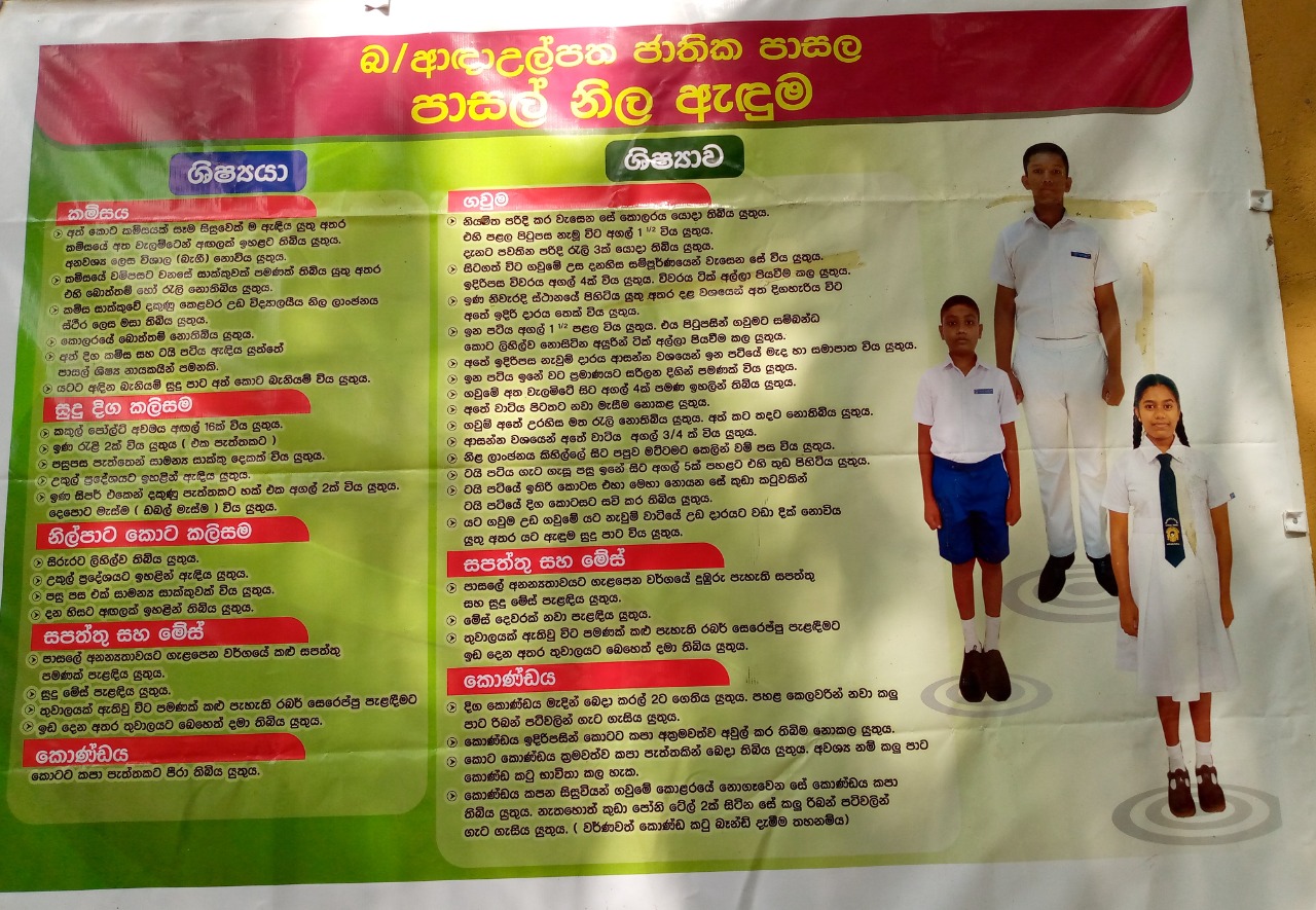 පාසලේ අනන්යතාවය, පිළිවෙල හා සාමුහිකත්වය ඔප්නංවන ප්රධාන අංගය නිළ ඇදුමයි. නිල ඇදුම භාවිතා කිරීමේදී පහත දැක්වෙන නීති රීති අනුගමනය කිරීම අනිවාර්ය වේ.